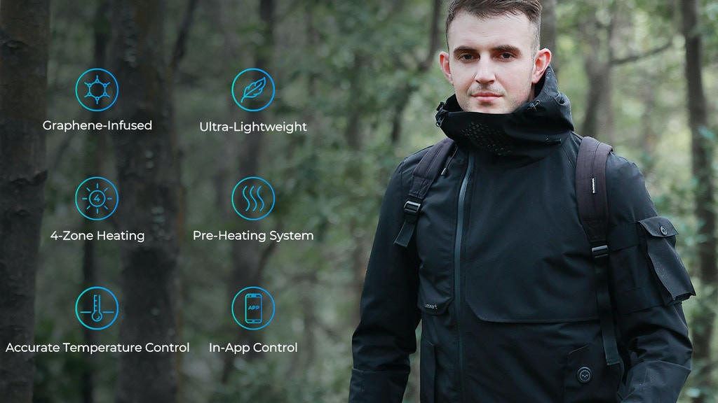 Self Heating | Response to changes in temperature | In-App Preheat System | Theft-proof material | Build-in facemask | Breathable
